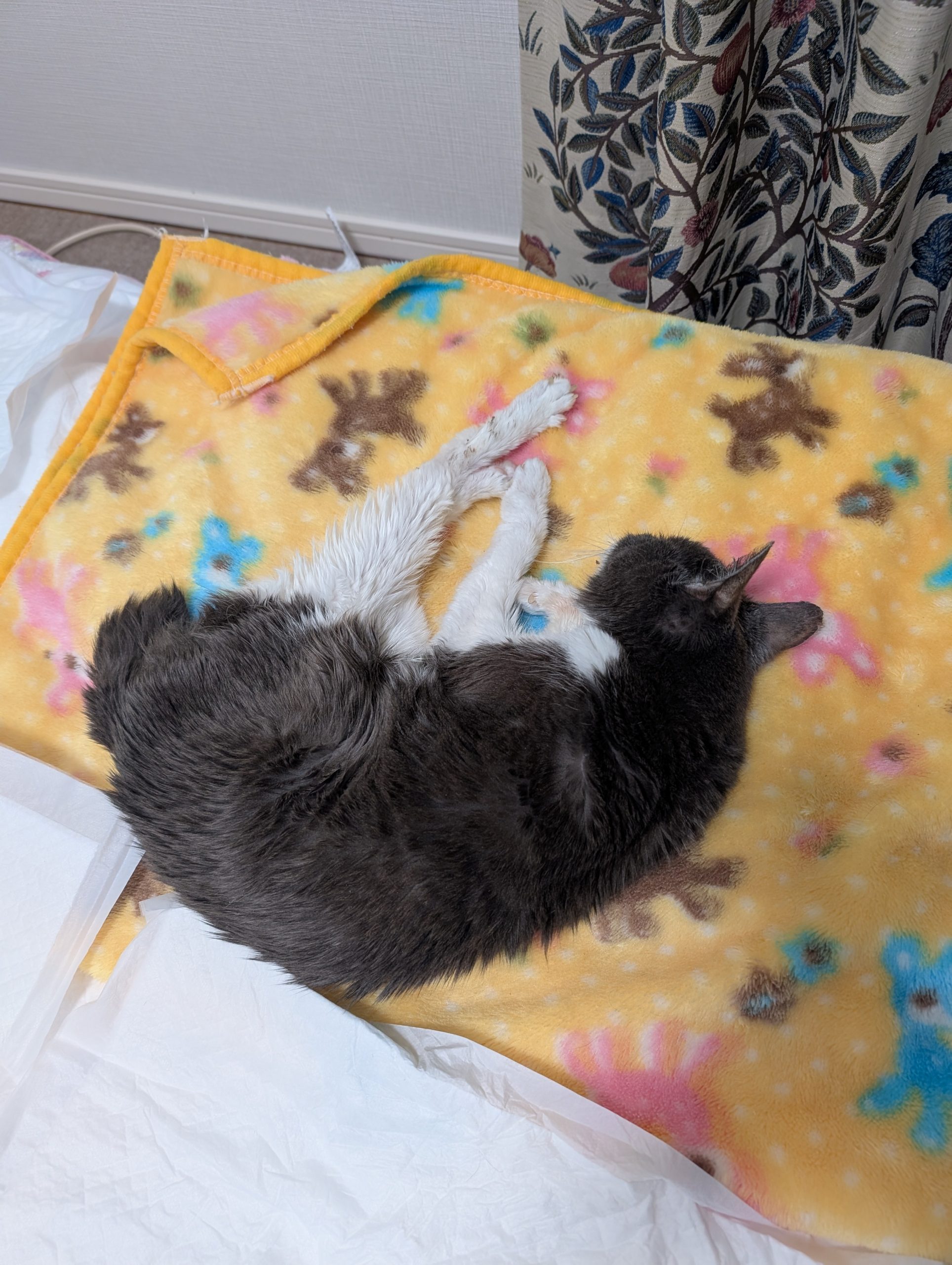 部屋中を徘徊してその後自分の毛布にもどって寝るという行動がお掃除ロボットのようです